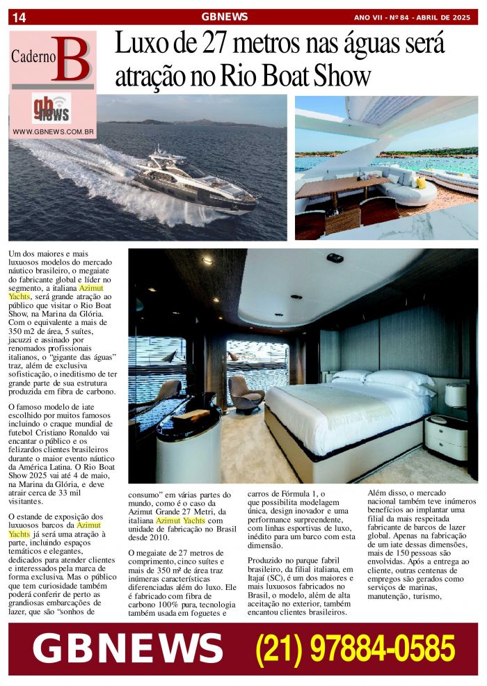 brasileiro, o megaiatedo fabricante global e líder nosegmento, a italiana AzimutYachts, será