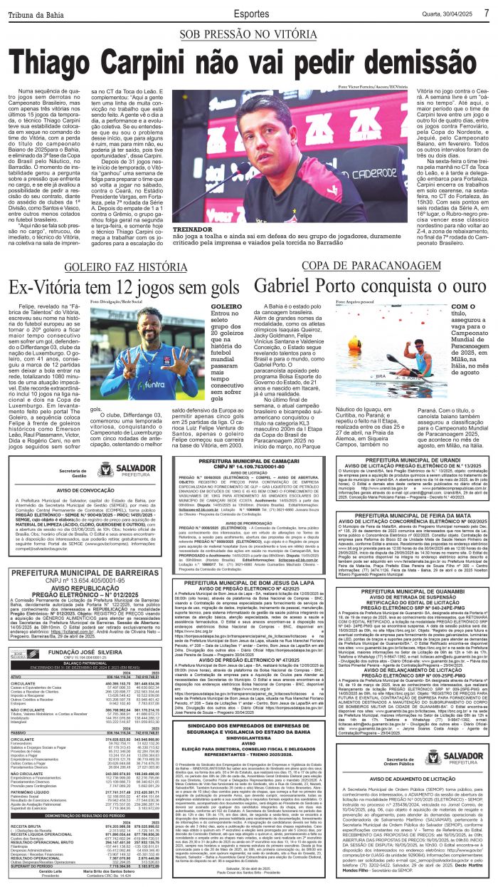 30/04/2025 - Tribuna da Bahia