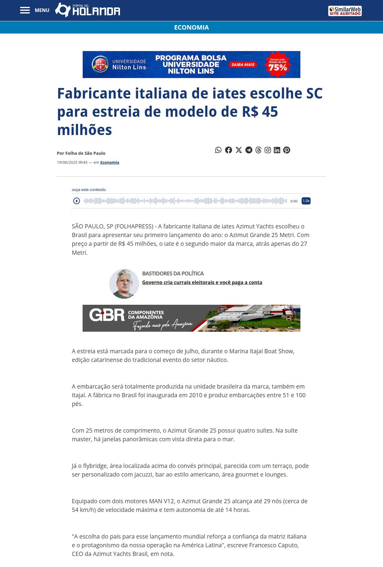 https://www.portaldoholanda.com.br/economia/fabricante-italiana-de-iates-escolhe-sc-para-estreia-de-modelo-de-r-45-milhoes