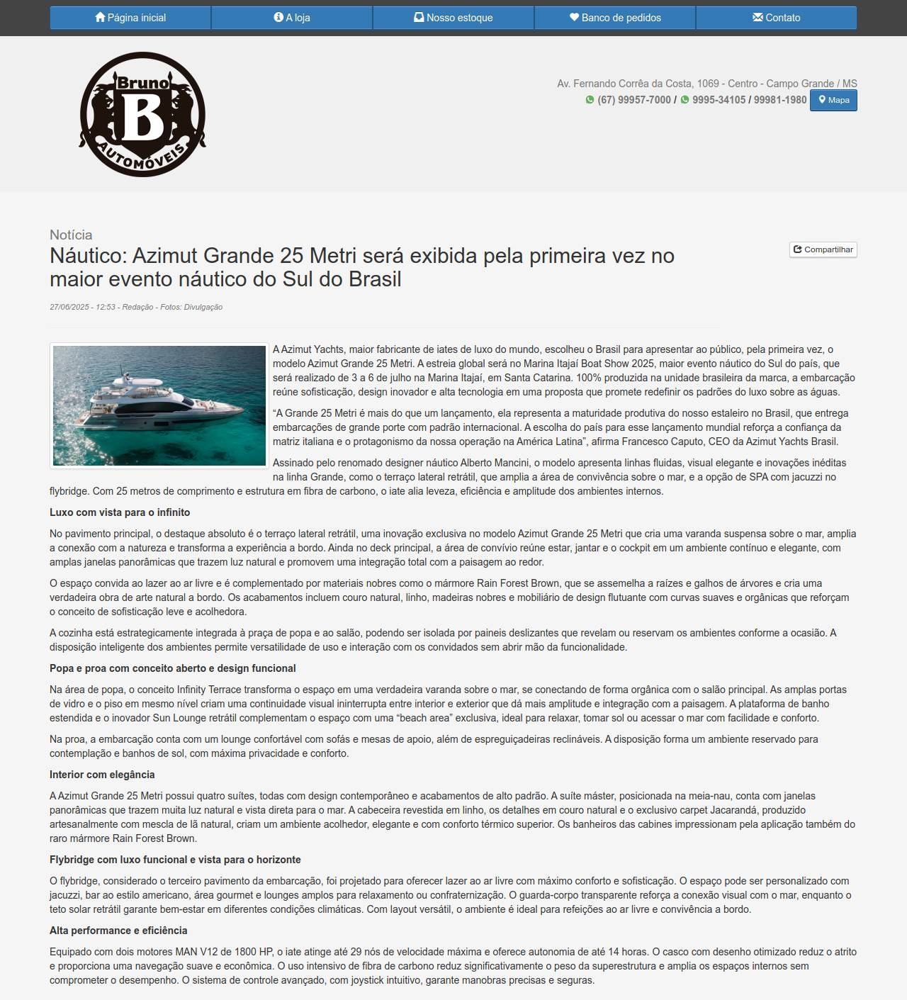 Notícia Náutico: Azimut Grande 25 Metri será exibida pela primeira vez no maior evento náutico do Sul do Brasil 27/06/2025